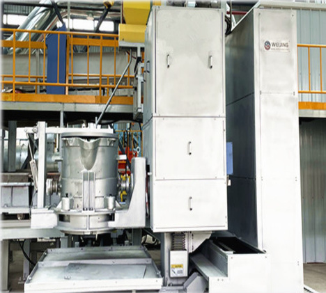 采用鋼帶以包芯線(xiàn)機(jī)將稀土鎂合金包裹其中,制成合金包芯線(xiàn),然后以喂線(xiàn)機(jī)將其喂入到鐵水處理包的底部來(lái)實(shí)現(xiàn)球化的目的